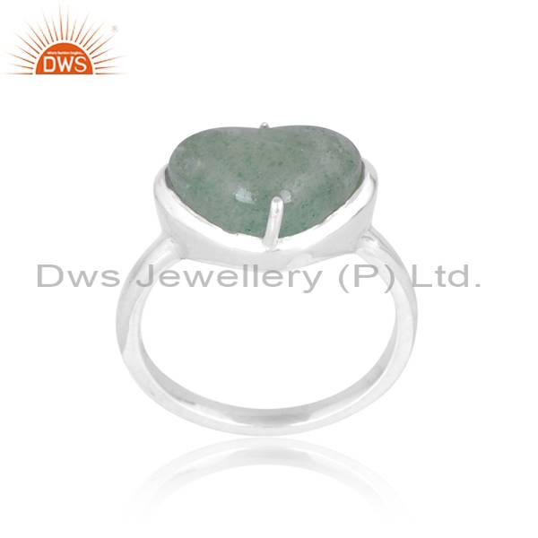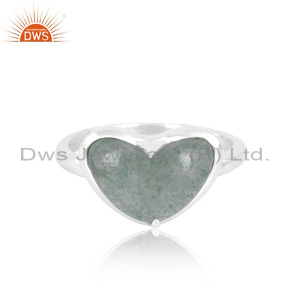 Stunning Heart Ring With Green Strawberry Quartz