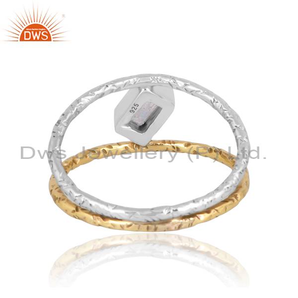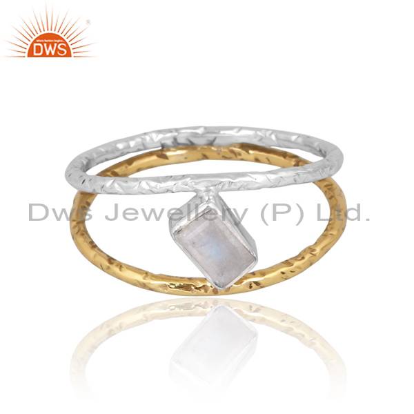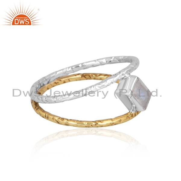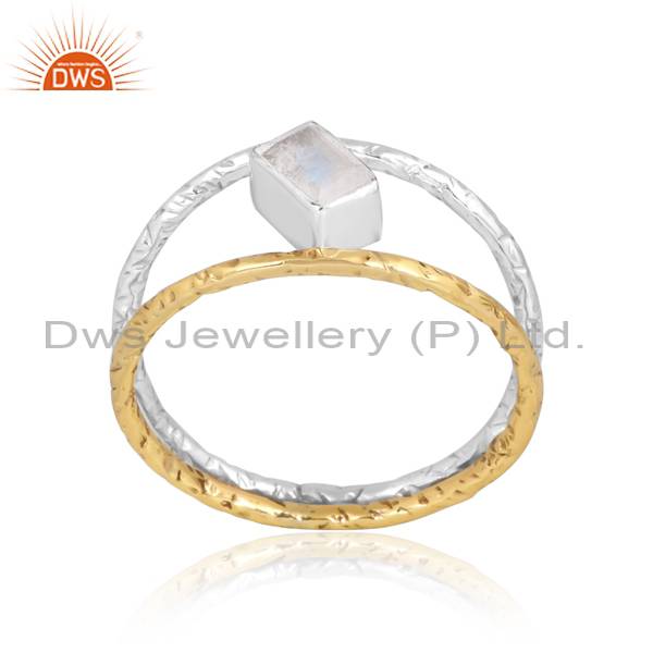 Stunning Rainbow Moonstone Ring With Silver & Brass Wire