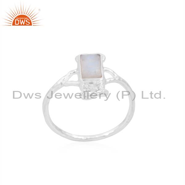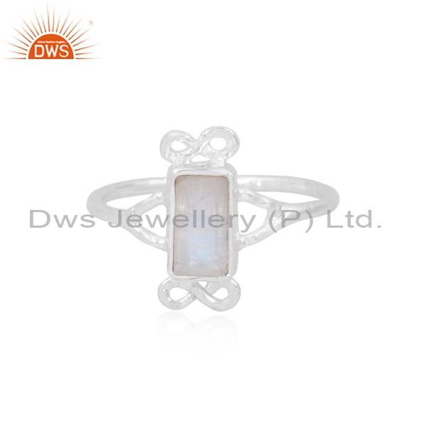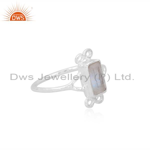 Stunning Silver Wire Ring With Rainbow Moonstone