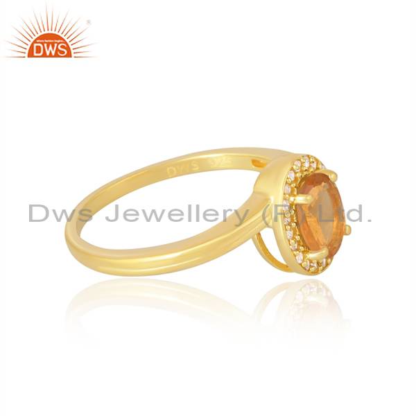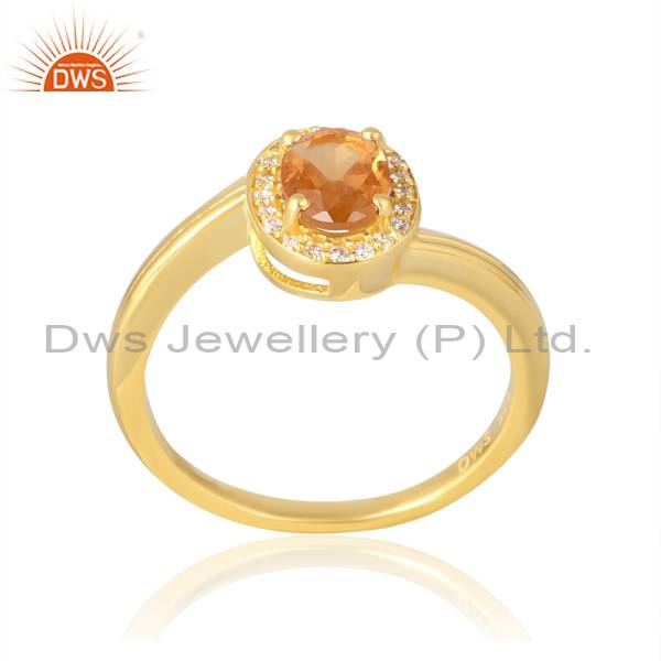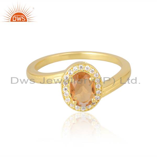 Stunning Sterling Silver & 18K Gold Citrine & Cz Ring