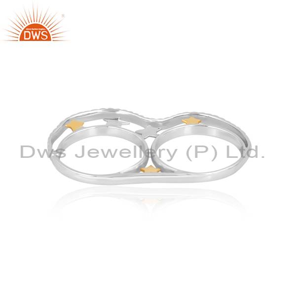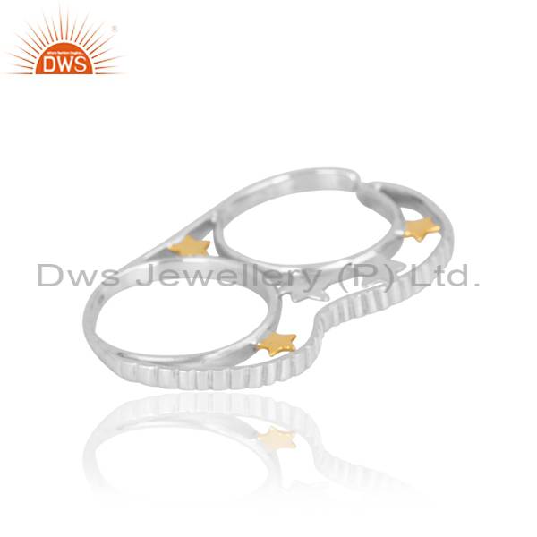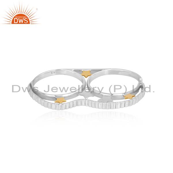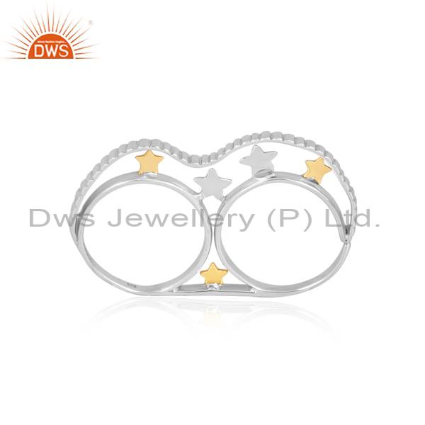 Stunning Sterling Silver Double Finger Ring - 3 Star Design