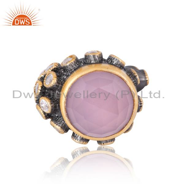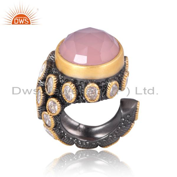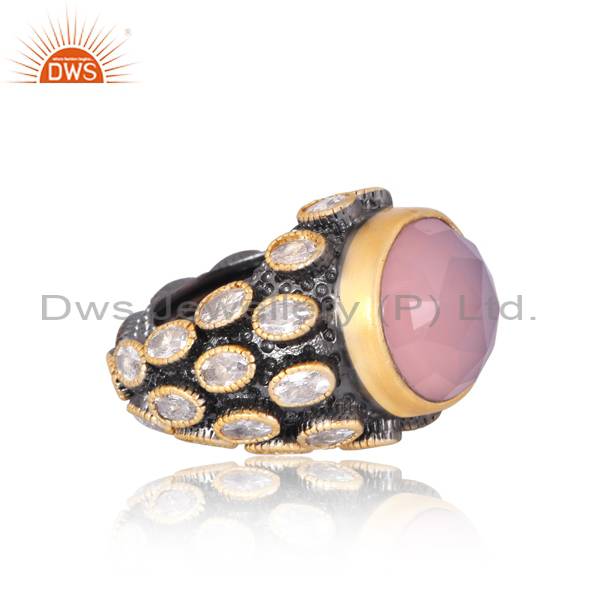 Style With Elegance Silver Gold, Black Rose Chalcedony Ring