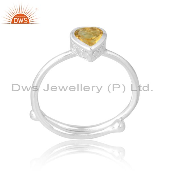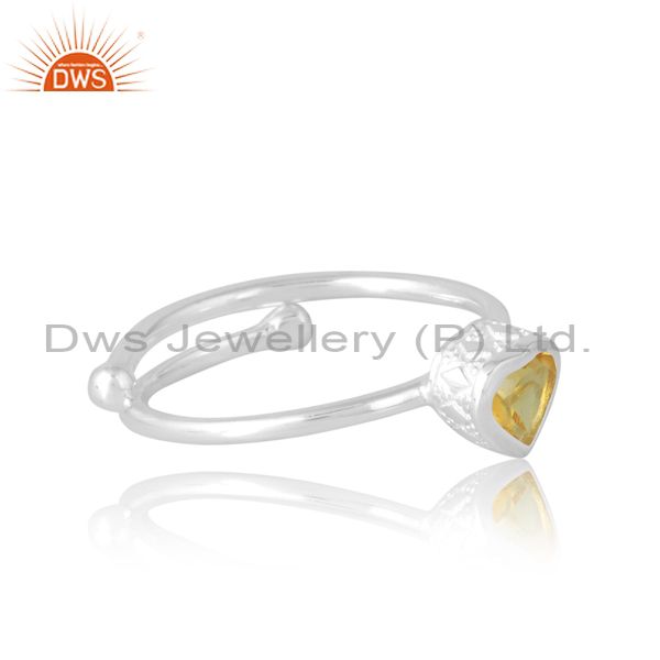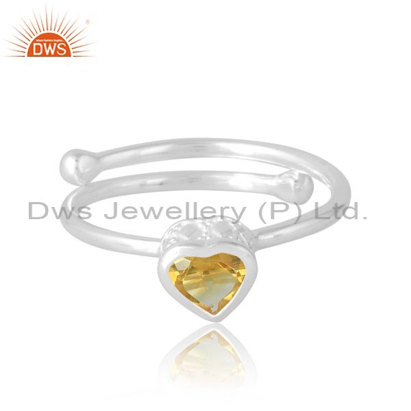 Stylish And Beautiful Heart Adjustable Silver Band Citrine