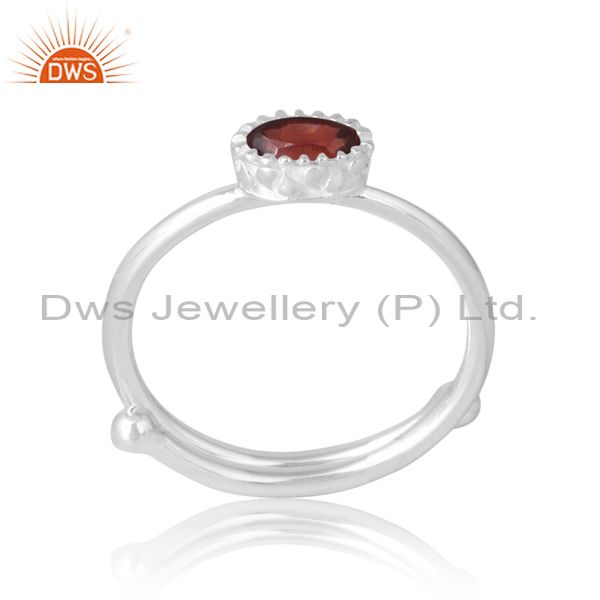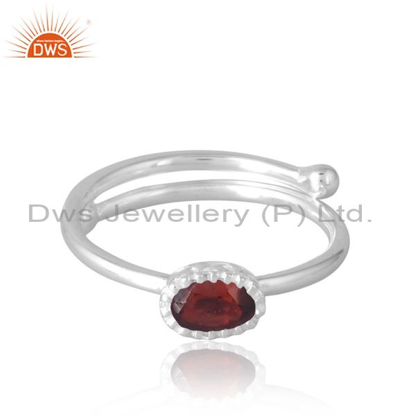 Stylish And Beautiful Oval Adjustable Silver Band In Garnet