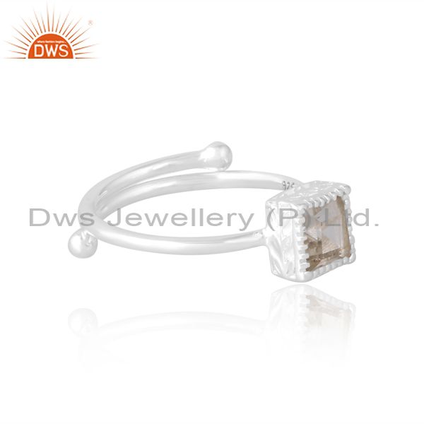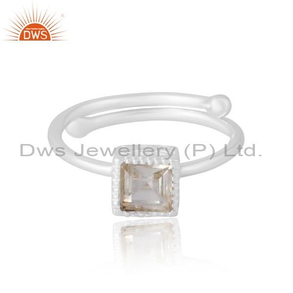 Stylish And Fine Amethyst Cut Square Silver Ring Unisex