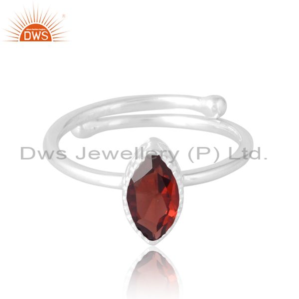 Stylish And Fine Garnet Marquise Cut Silver Ring Unisex