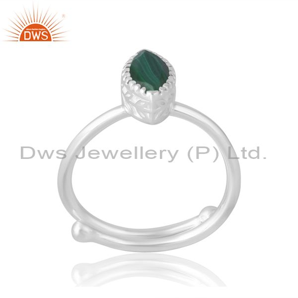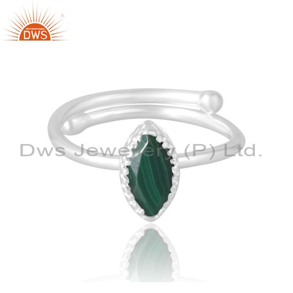 Stylish And Fine Malachite Marquise Cut Silver Ring Unisex