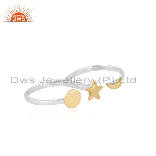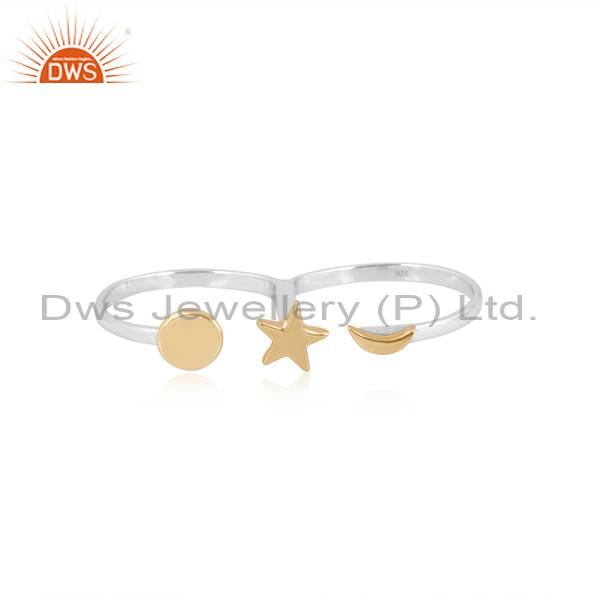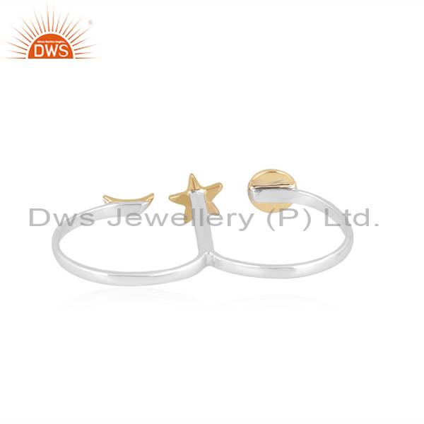 Stylish Double Finger 925 Silver Ring With Brass Moon & Star