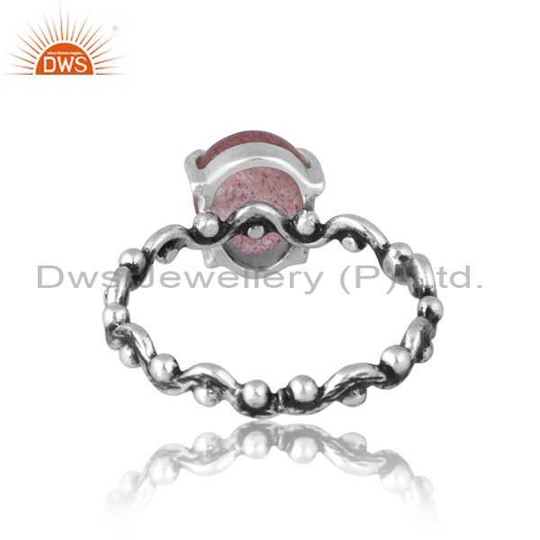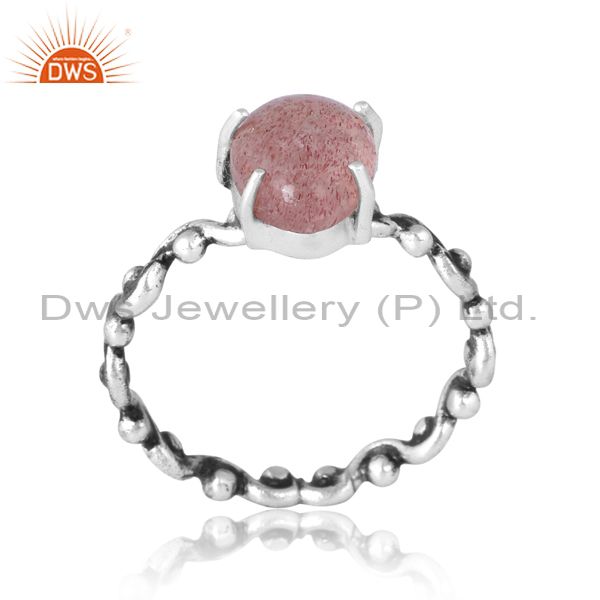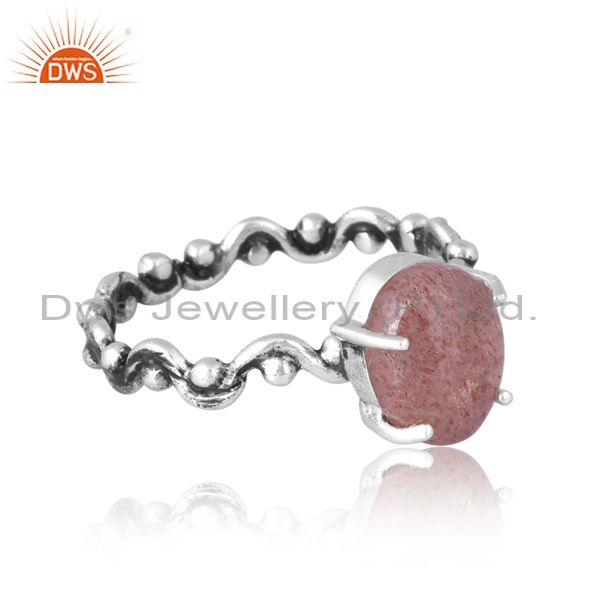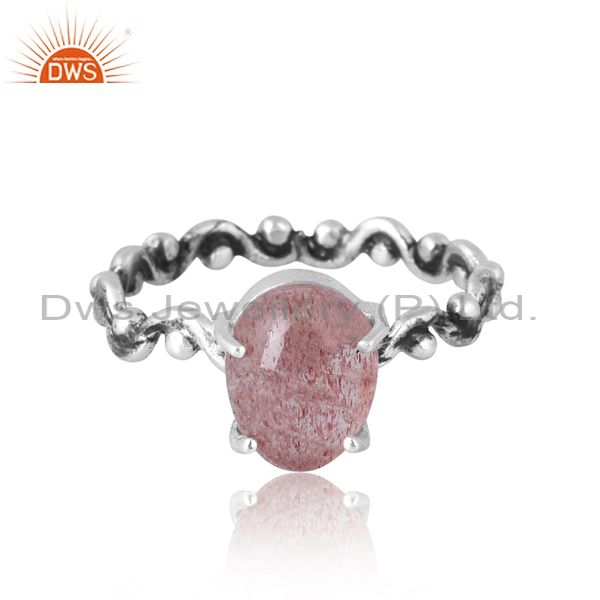 Stylish Oxidized Pattern Ring With Strawberry Quartz Unshape