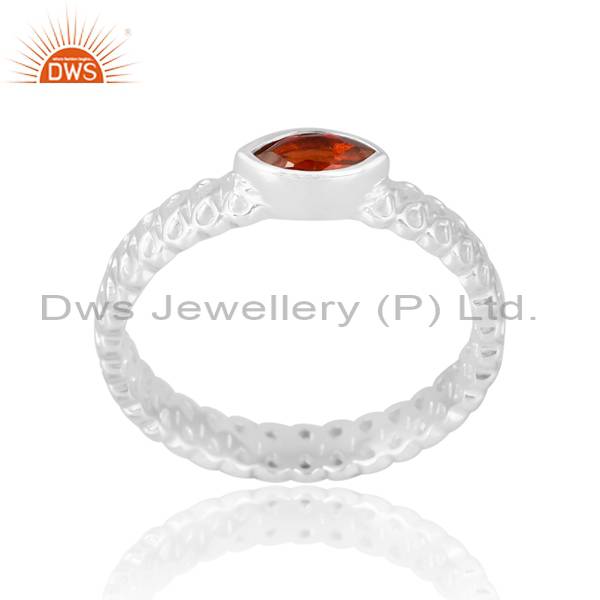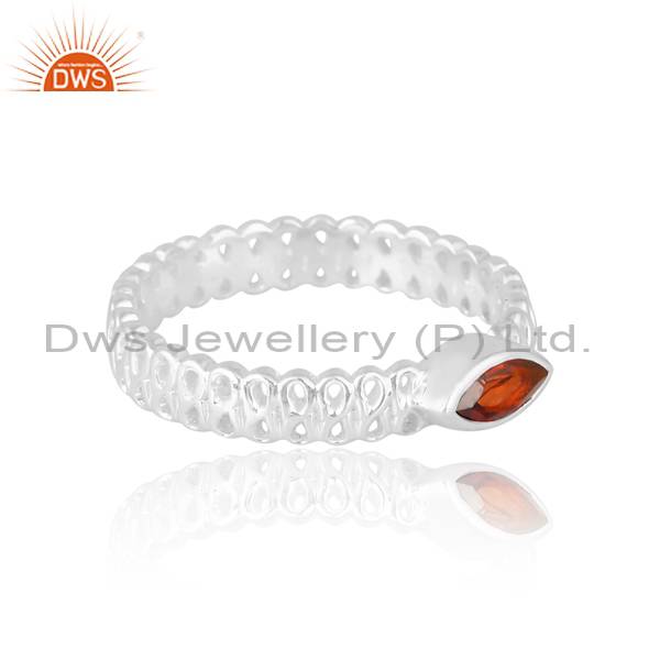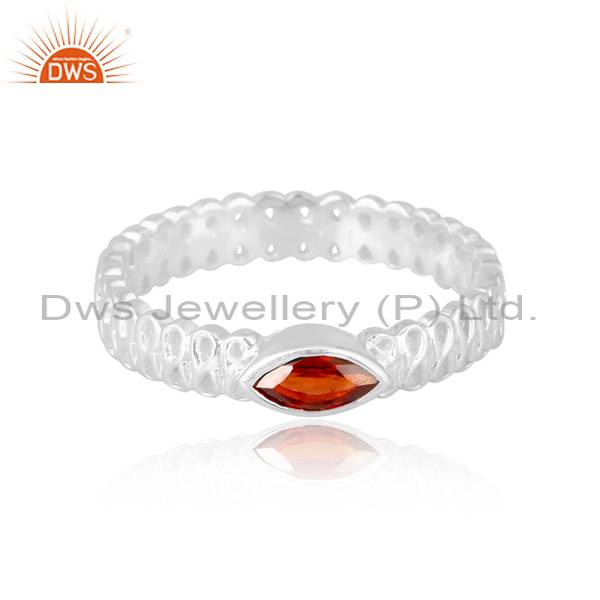 Stylish Stackable Ring With Marquise Cut Garnet For Girls