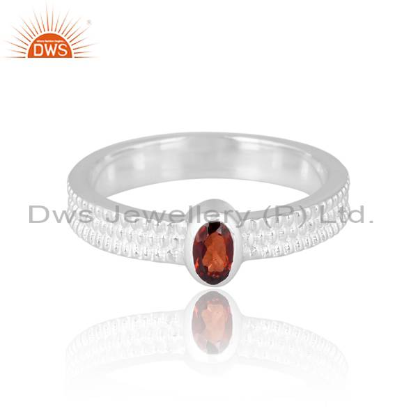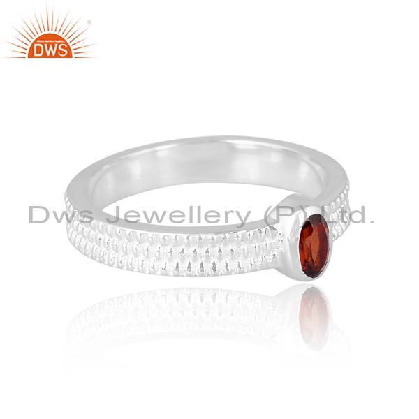 Stylish Stackable Ring With Oval Cut Garnet For Girls