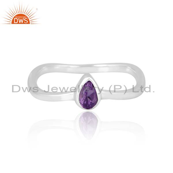 Stylish Stackable Ring With Pear Cut Amethyst For Girls