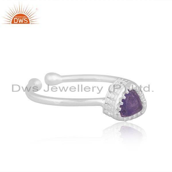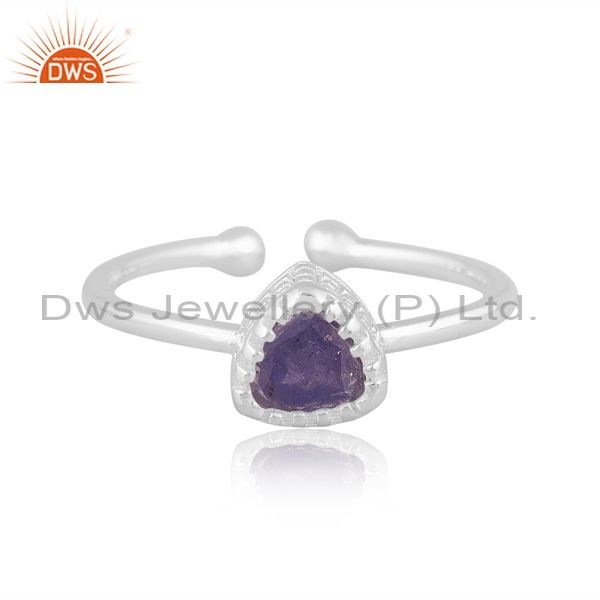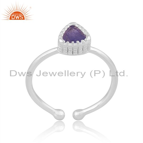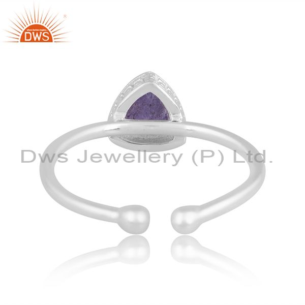 Tanzanite Cut Trillion With White Sterling Silver Ring