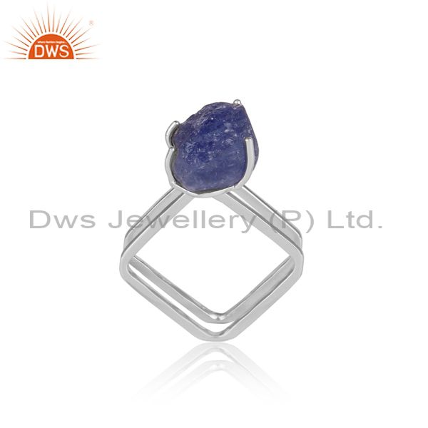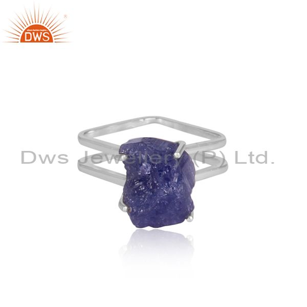 Tanzanite Set Fine 925 Sterling Silver Designer Square Ring