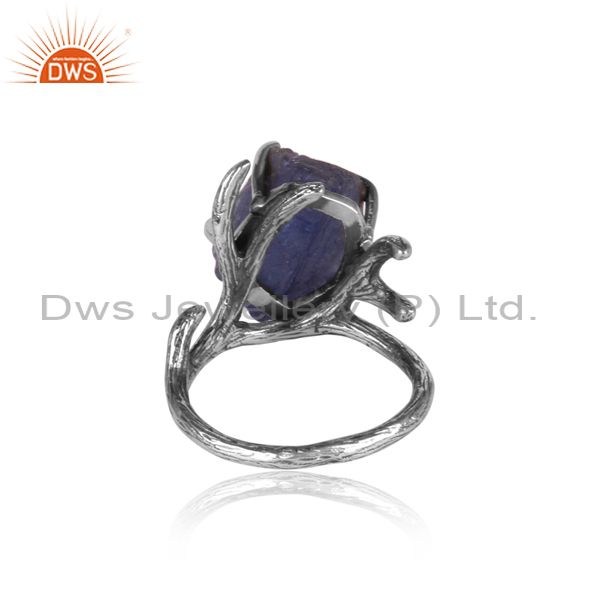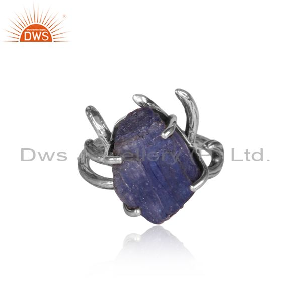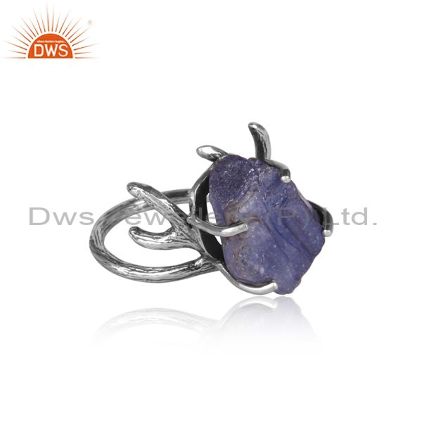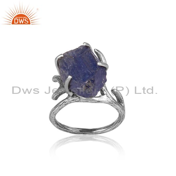 Tanzanite Set Oxidized 925 Silver Abstract Designer Ring