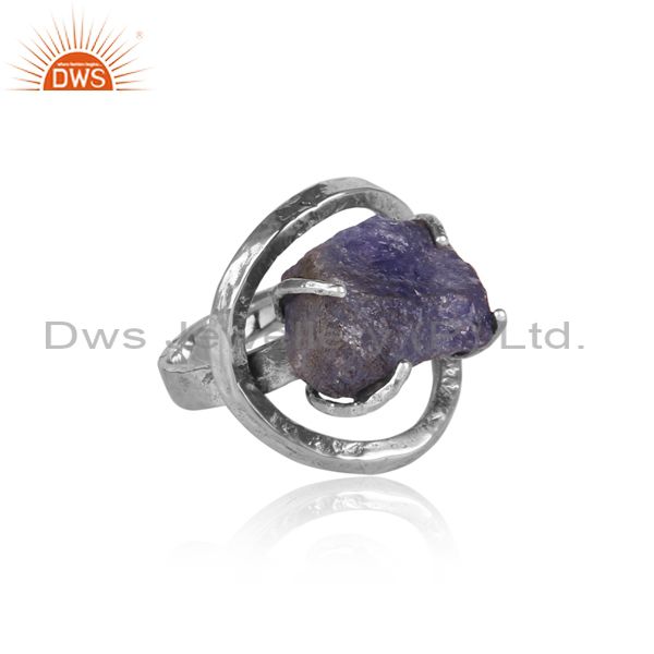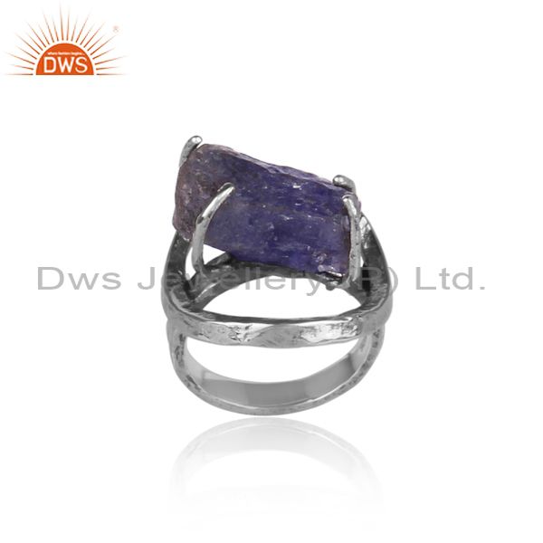 Tanzanite Set Oxidized 925 Silver Designer Abstract Ring