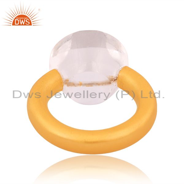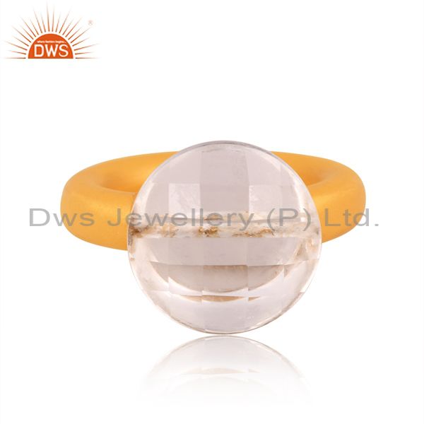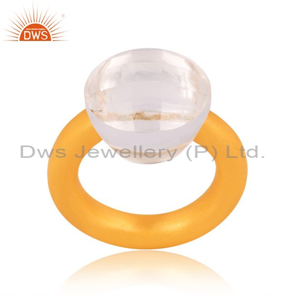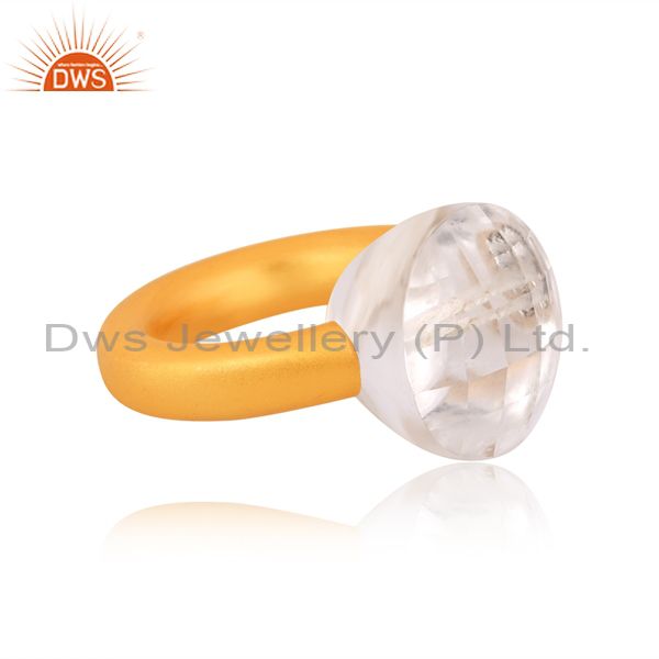 Taper Cut Crystal Quartz Set Gold On Fine 925 Silver Ring