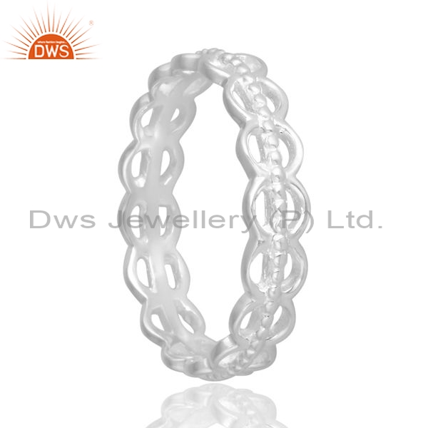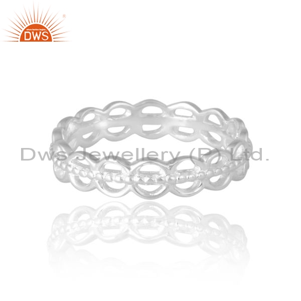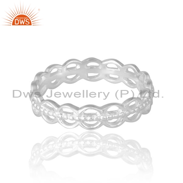 Tappered And Carved Sterling Silver White Ring