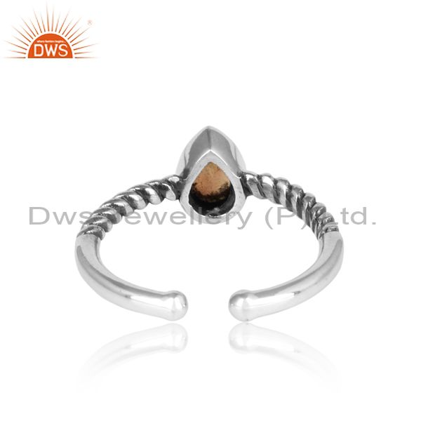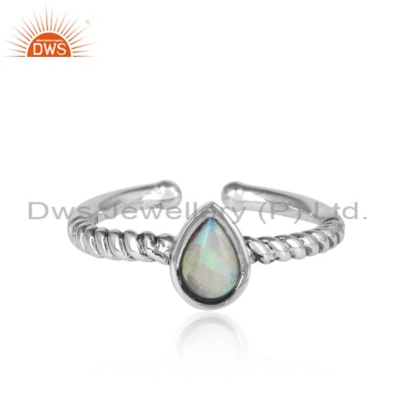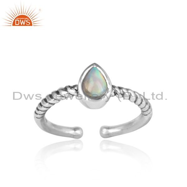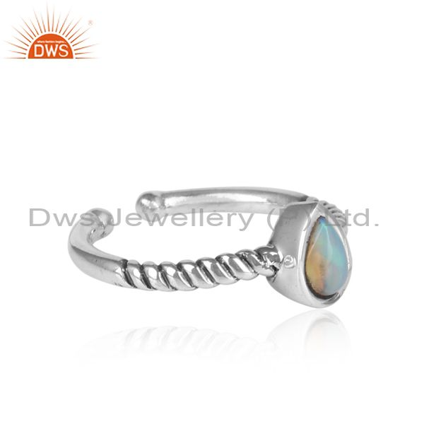 Tear Drop Ethiopian Opal Handmade Oxidized Silver Twist Ring