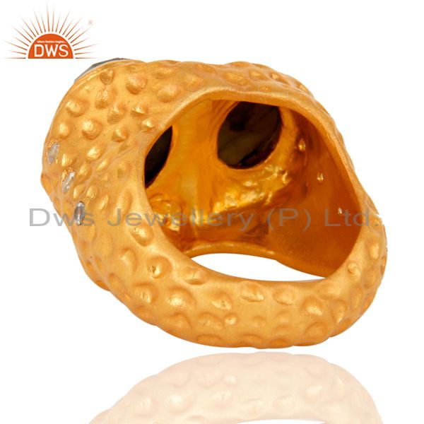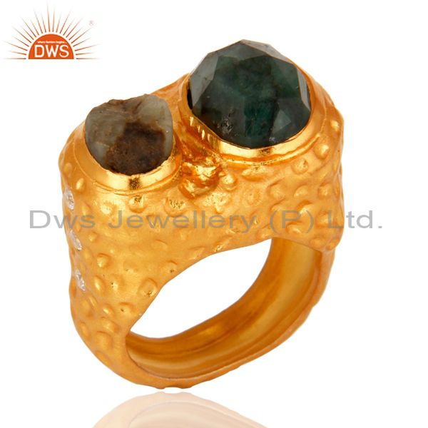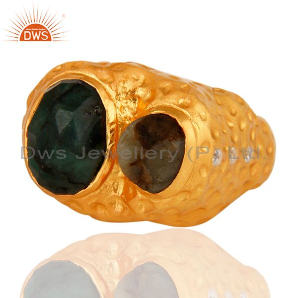 Textured Design Sterling Silver With 18K Gold Plated Emerald Ring