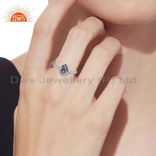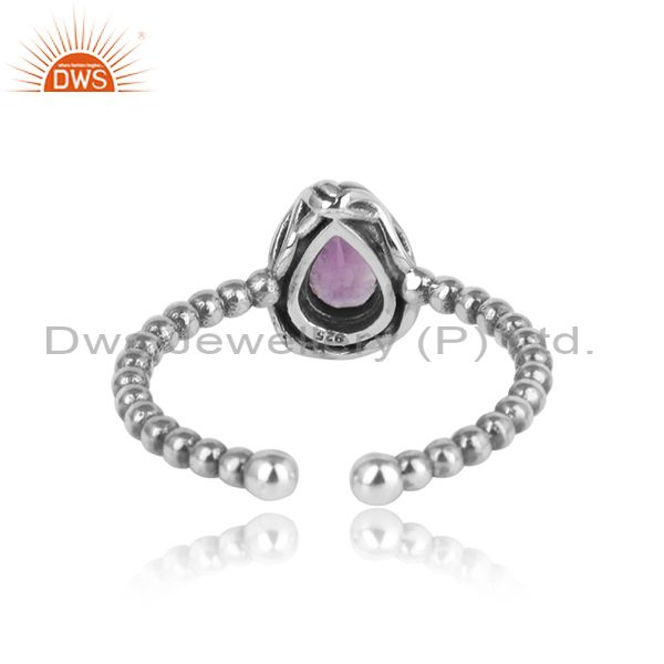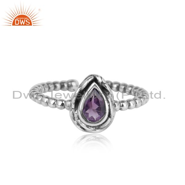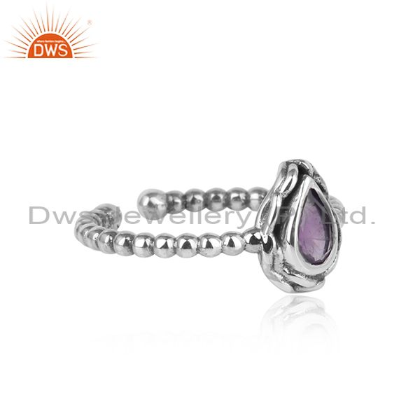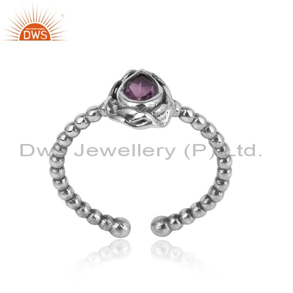Textured Handcrafted Oxidized Silver Ring with Amethyst