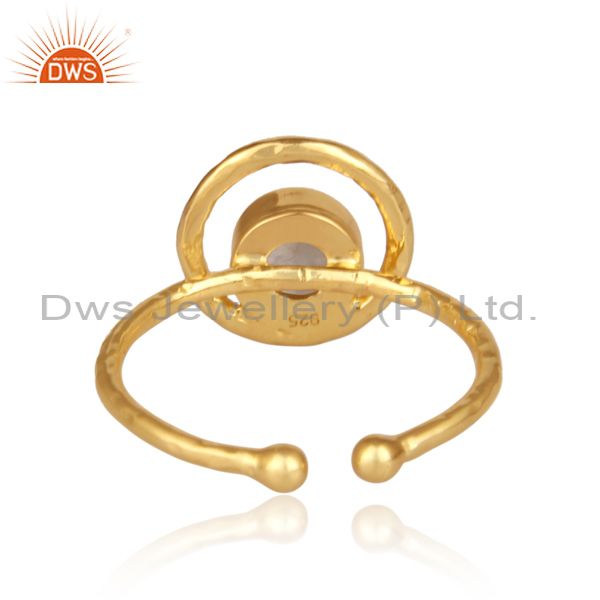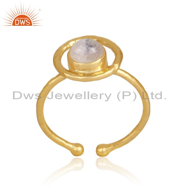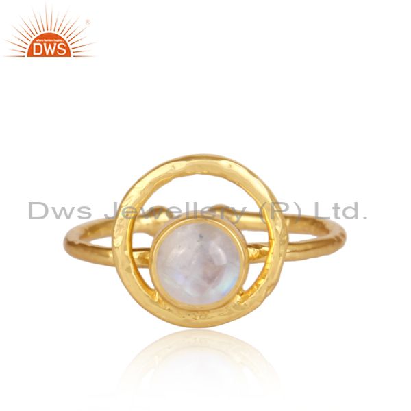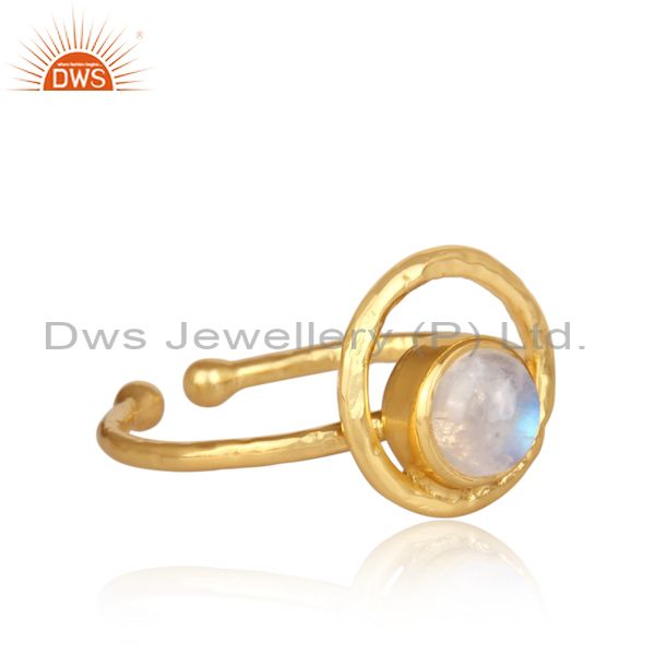Textured Handmade Silver Gold on Ring with Rainbow Moonstone
