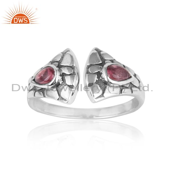 Textured Ring in Oxidized Silver Adorn with Pink Tourmaline