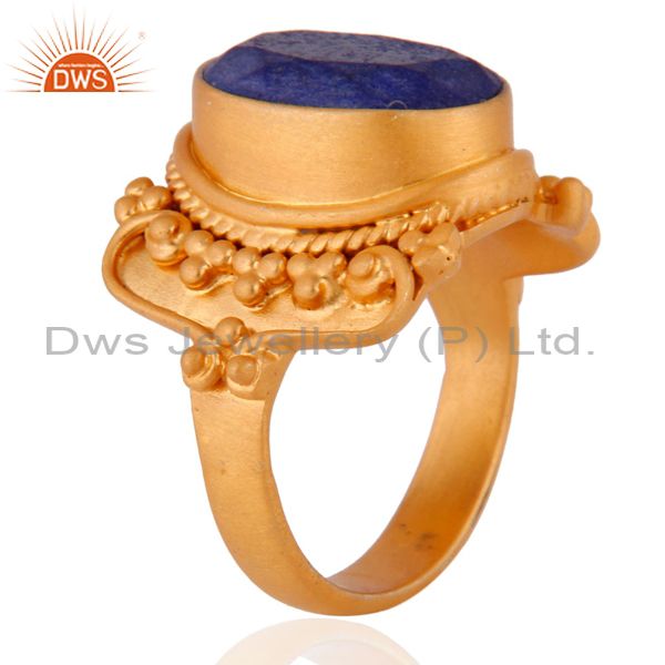 Third Eye Chakra Ggemstone Lapis Lazuli 18K Yellow Gold Plated 925 Silver Ring
