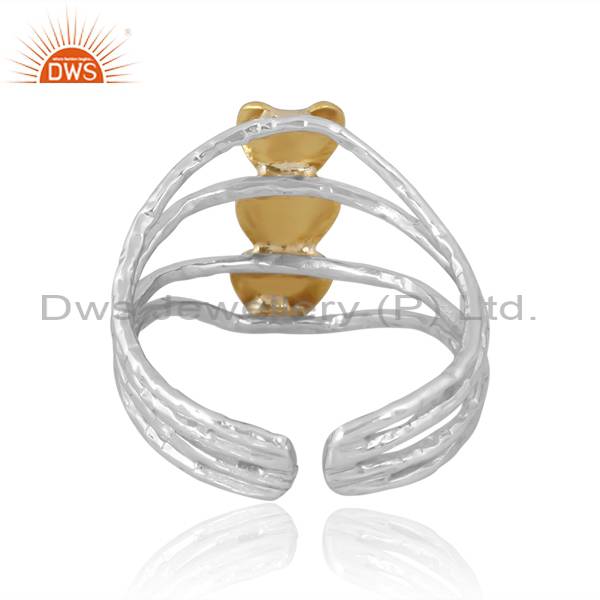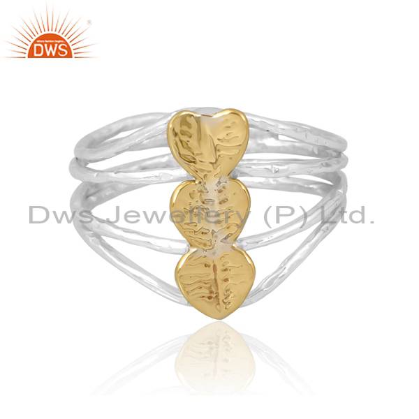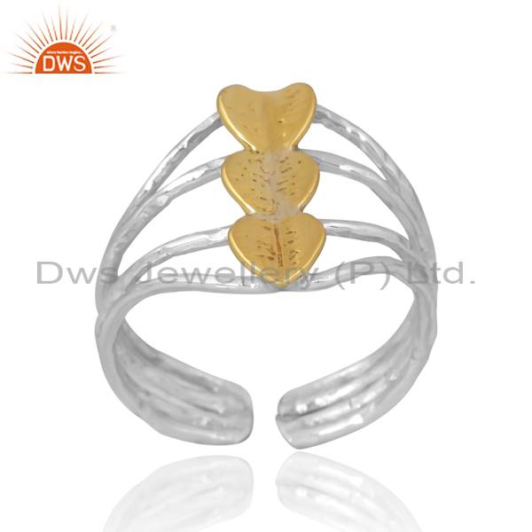 Three Brass Heart And Silver Pita Wire Trendy Ring For Girls
