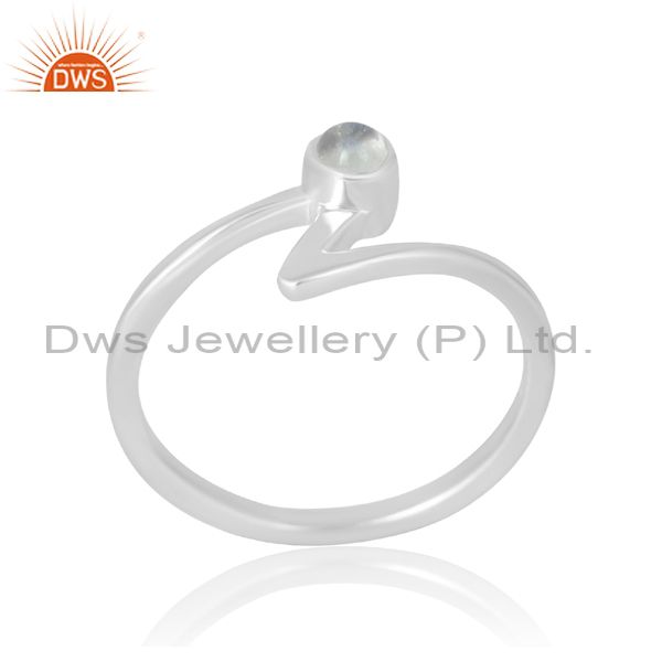 Thunder Form Silver Ring With Rainbow Moonstone Women Gift