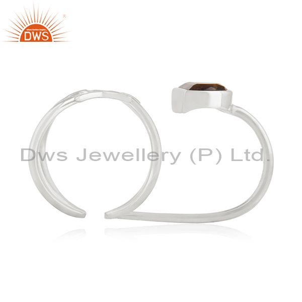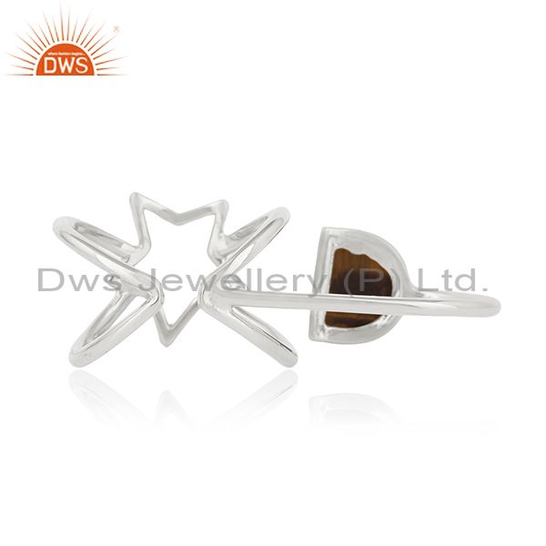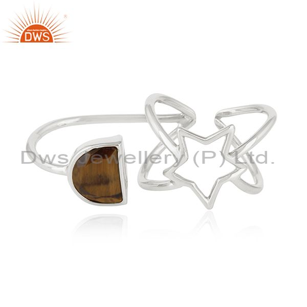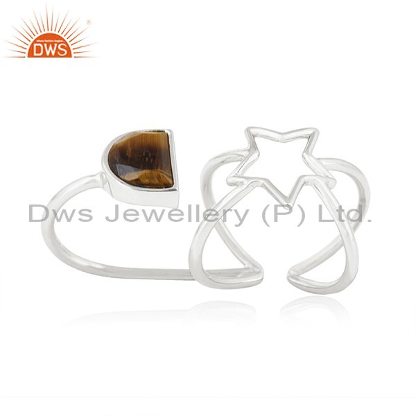 Tiger Eye Gemstone Fine Sterling Silver Star Charm Double Finger Ring Wholesale