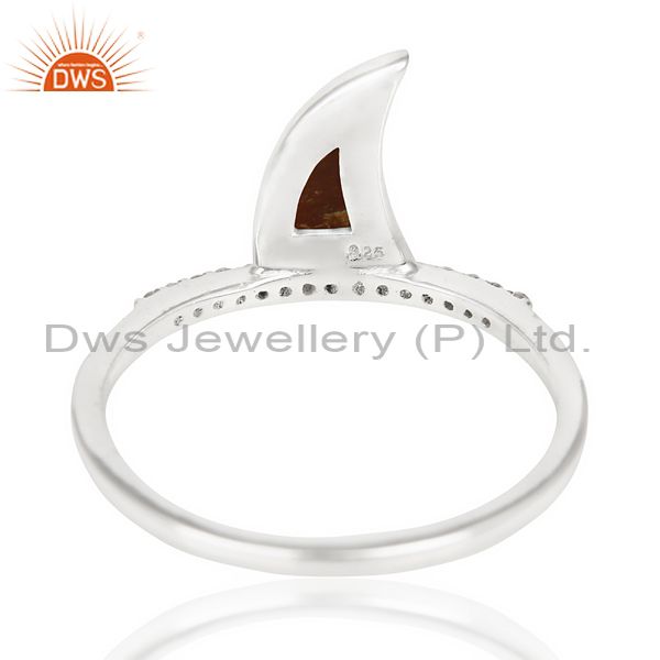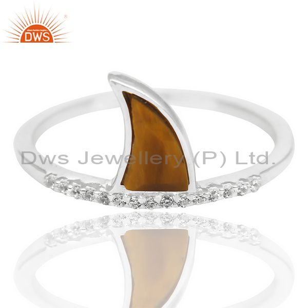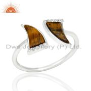 Tigereye Horn Cz Studded Adjustable 92.5 Sterling Silver Ring