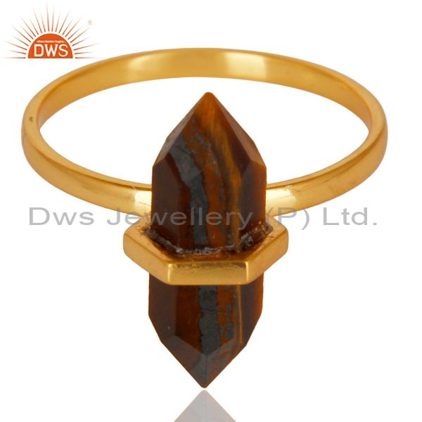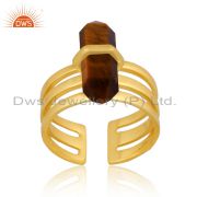 Tigereye Terminated Pencil Gold Plated 92.5Stelring Silver Wholesale Ring