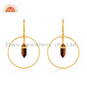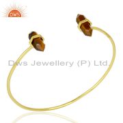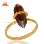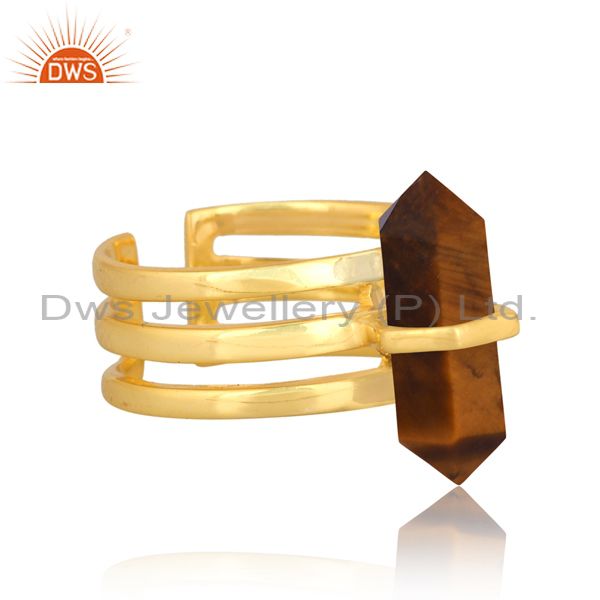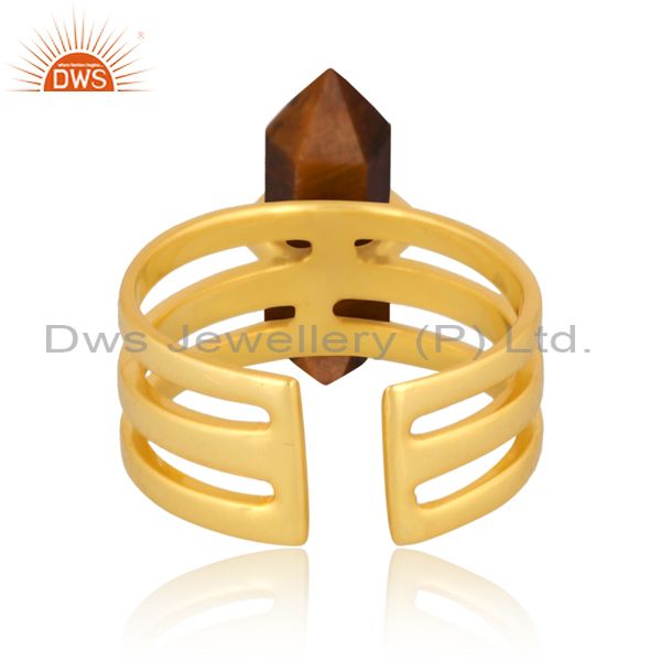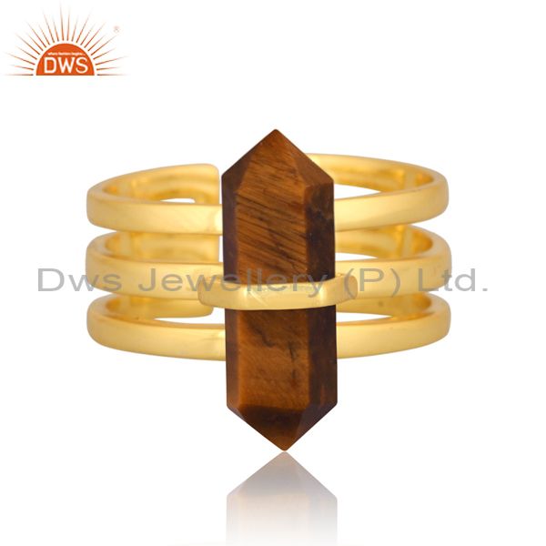 Tigereye Wide Horn Adjustable 14K Gold Plated Sterling Silver Ring