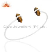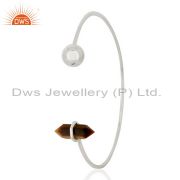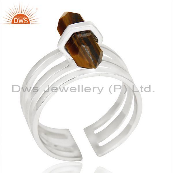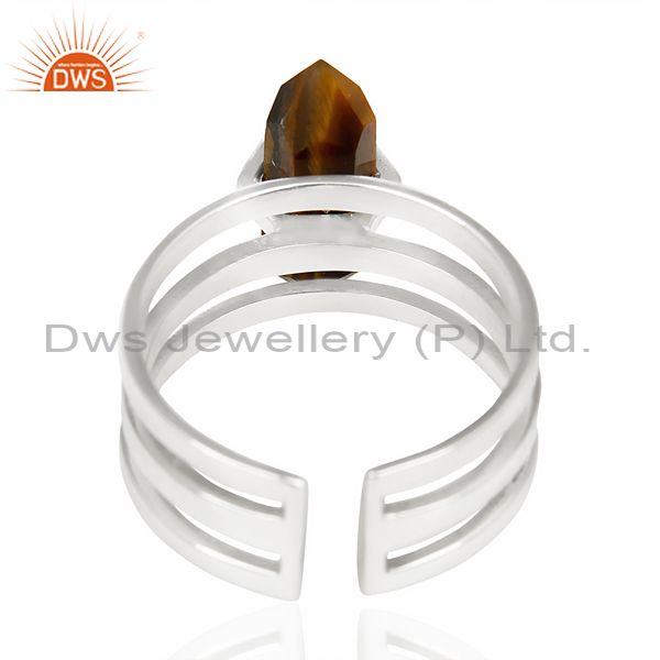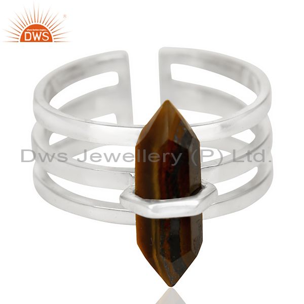 Tigereye Wide Horn Adjustable Openable 92.5 Sterling Silver Ring