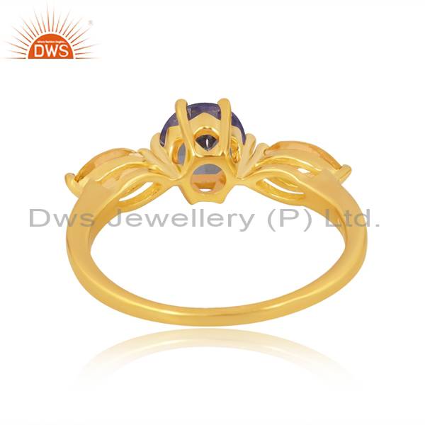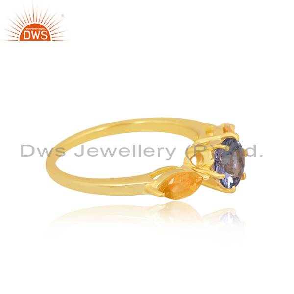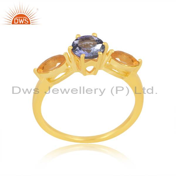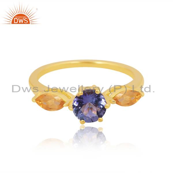 Trendy Finger Ring With Citrine And Lab Created Sapphire