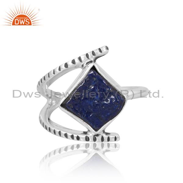 Trendy Finger Ring With Unshape Rough Lapis Lazuli For Girls