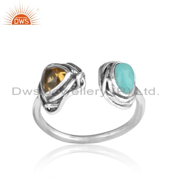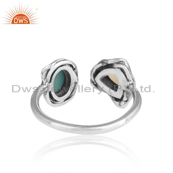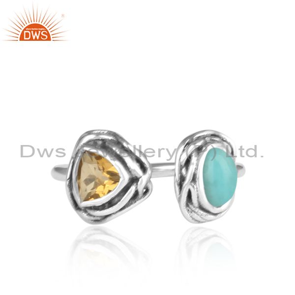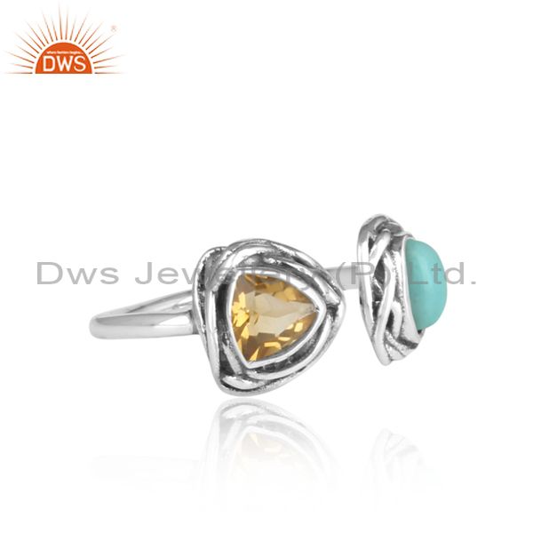 Triangle & Round Cut Citrine & Arizona turquoise Silver Ring