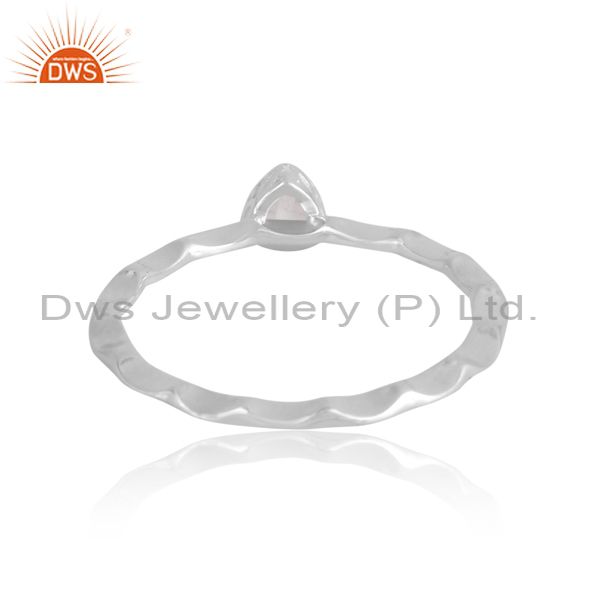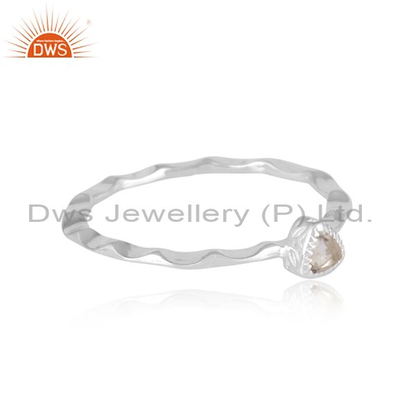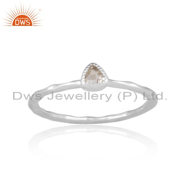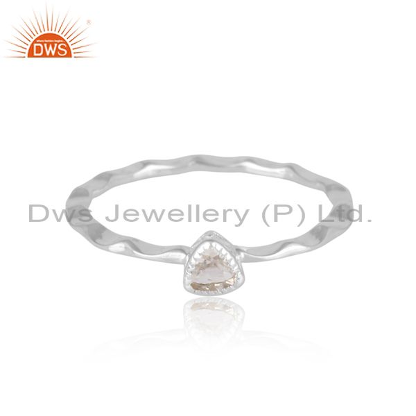 Triangle Cut Crystal Quartz Fine Silver Handhammered Ring