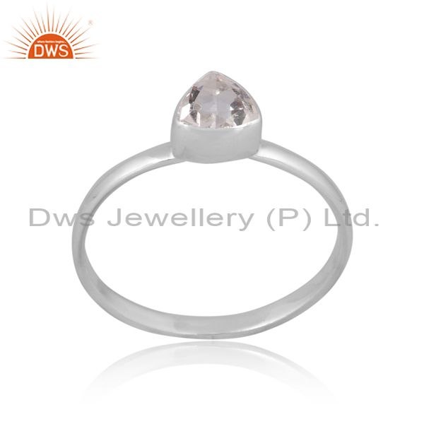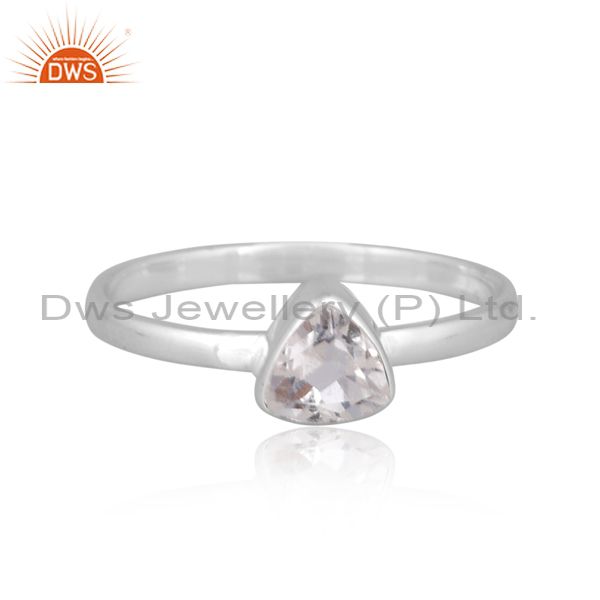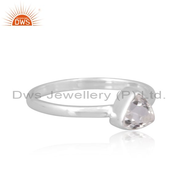 Triangle Cut Crystal Quartz Set Fine Silver Handmade Ring