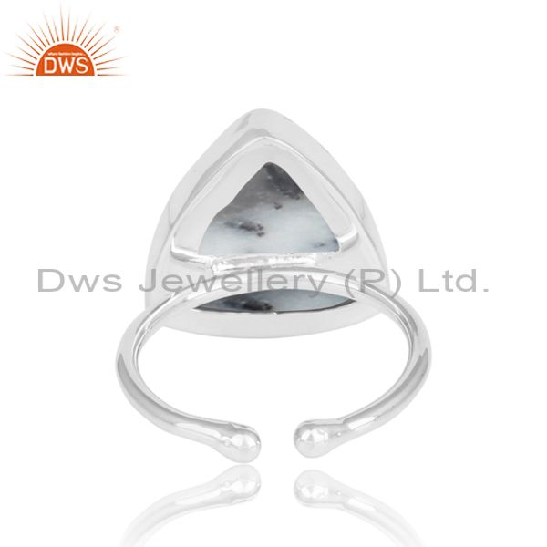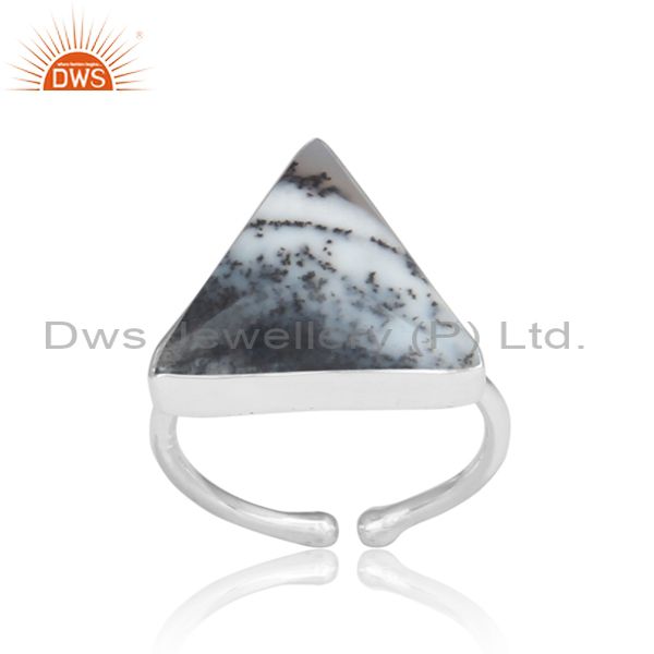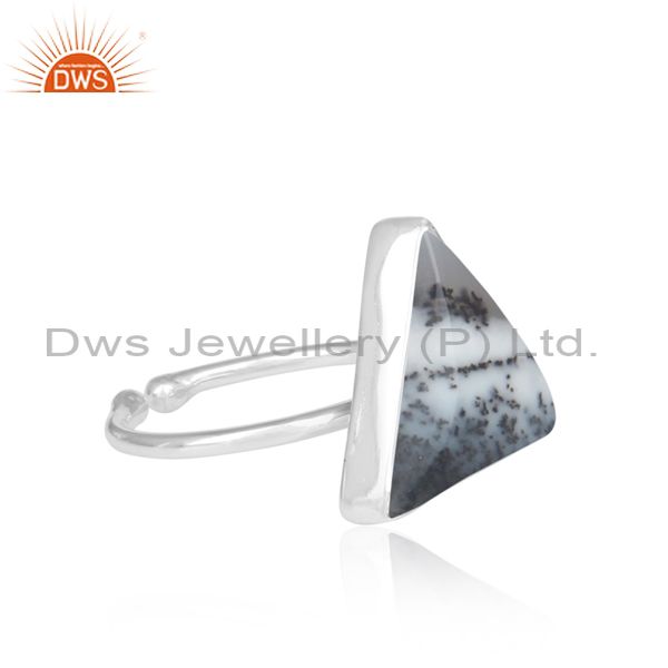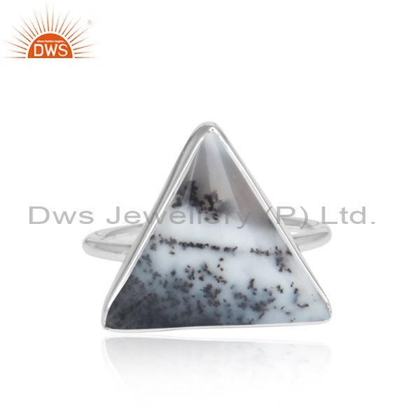 Triangle Cut Dendrite Set Fine 925 Silver Ring
