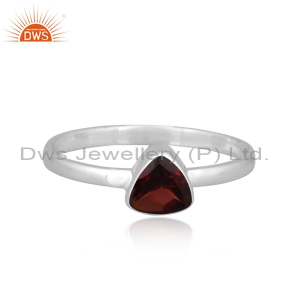 Triangle Cut Garnet Set Fine Sterling Silver Handmade Ring