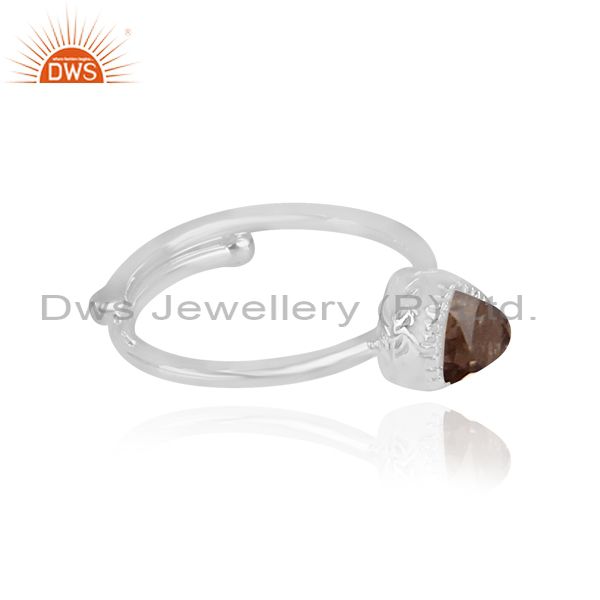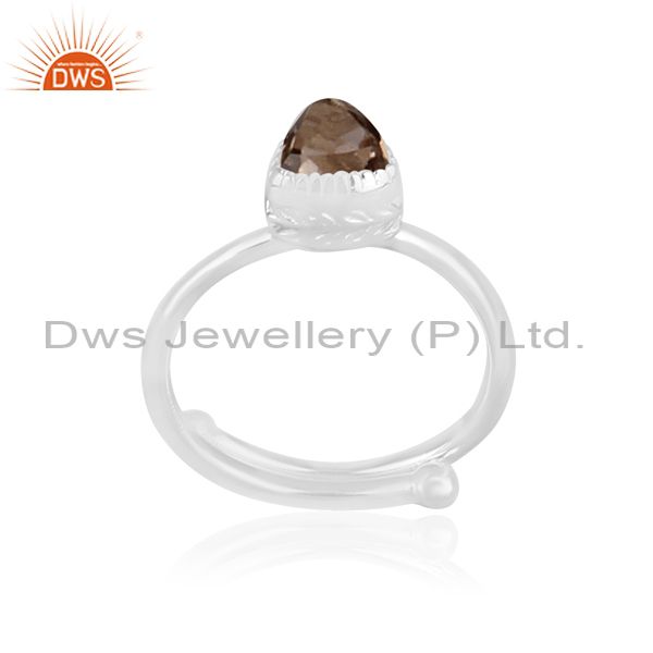 Triangle cut smoky set fine 925 sterling silver classic ring