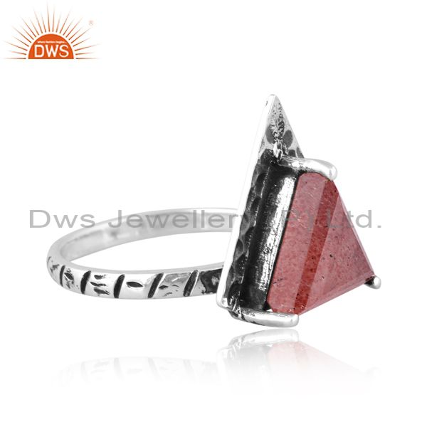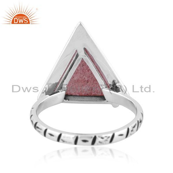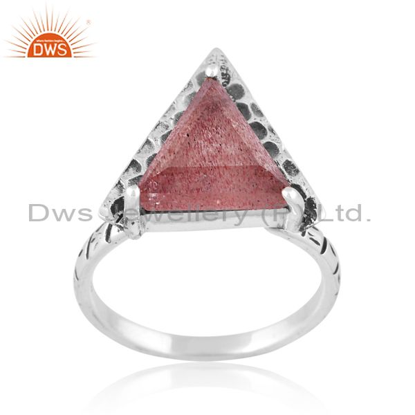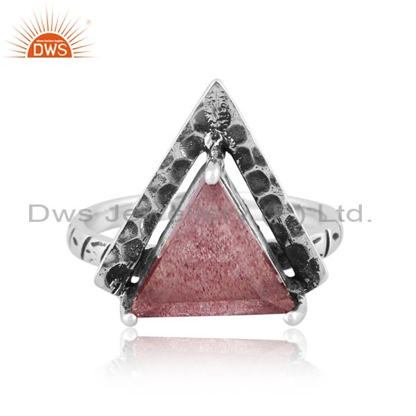 Triangle Cut Strawberry Quartz Set Fine Sterling Silver Ring
