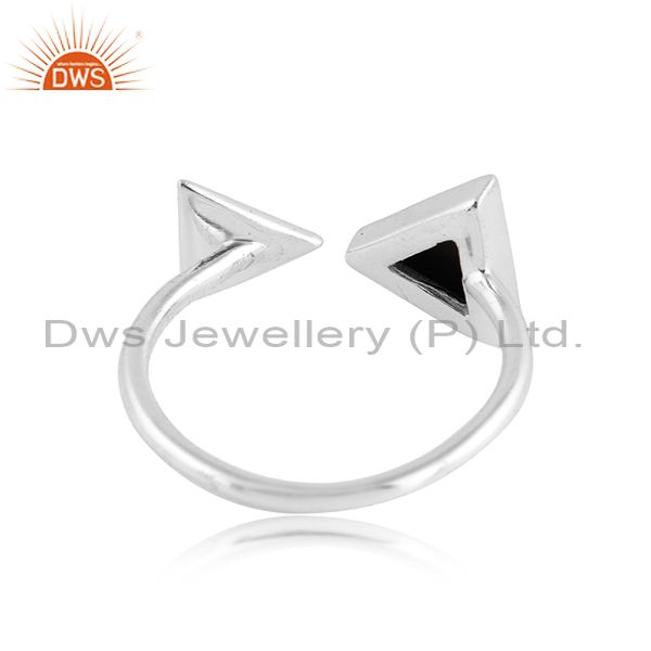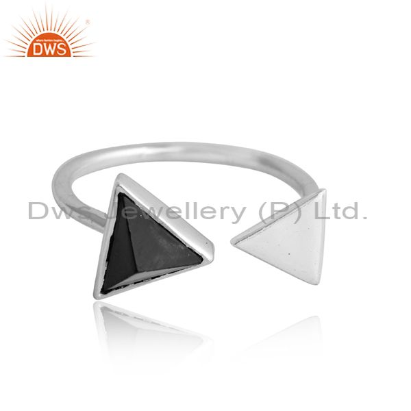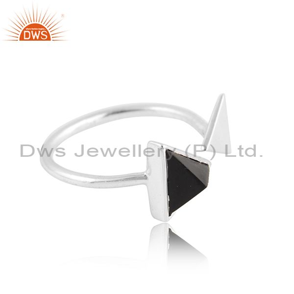 Triangle Design 925 Fine Silver Black Onyx Gemstone Ring Jewelry