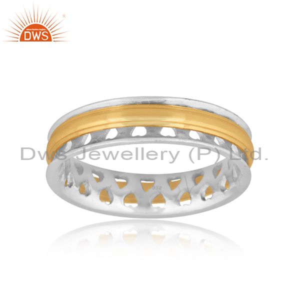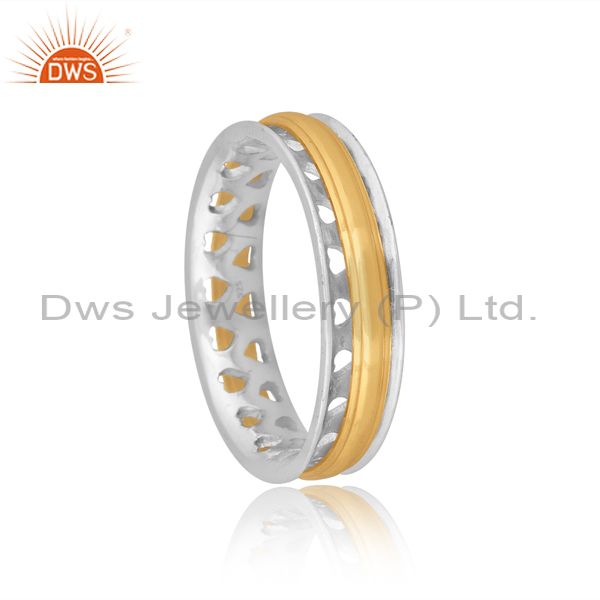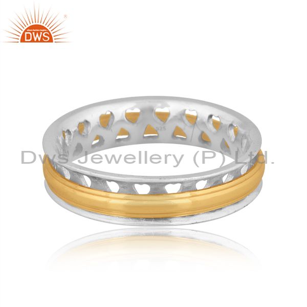 Triangle Pattern Impressed Gold On Fine Silver Designer Ring