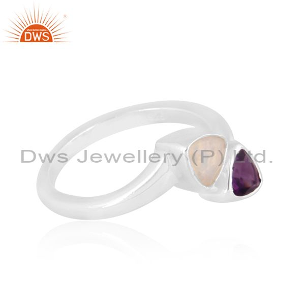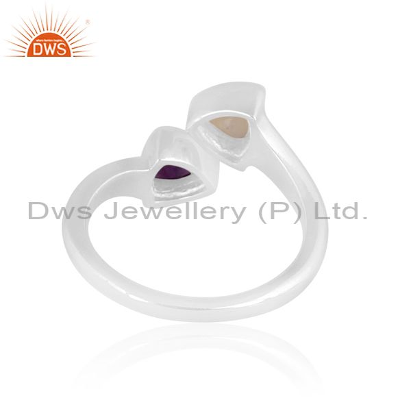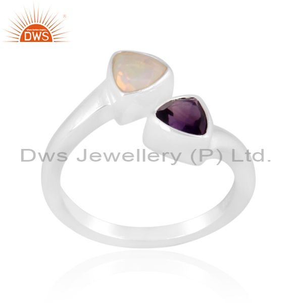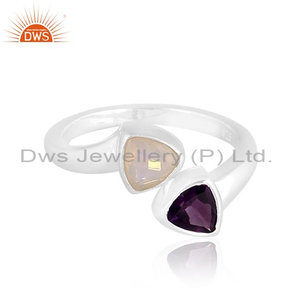 Triangular Amethyst And Ethiopian Opal Set Fine Silver Ring