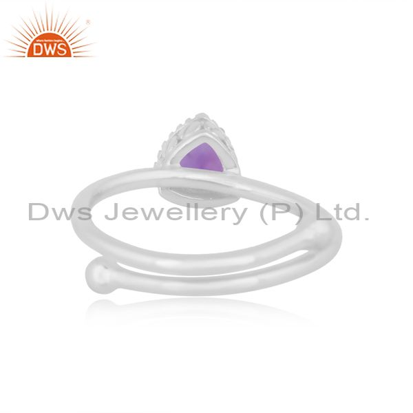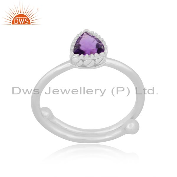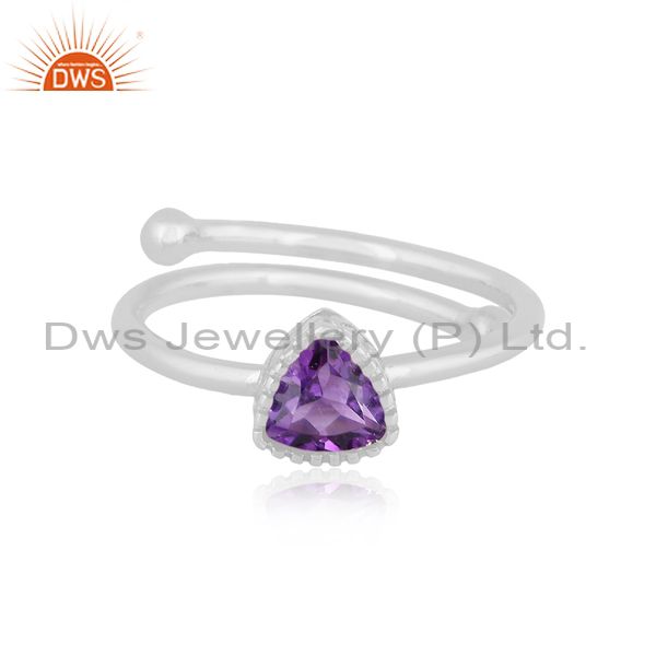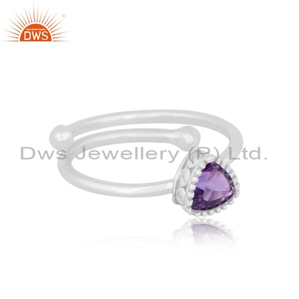 Triangular Amethyst Set Fine 925 Silver Designer Crown Ring