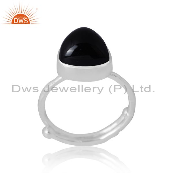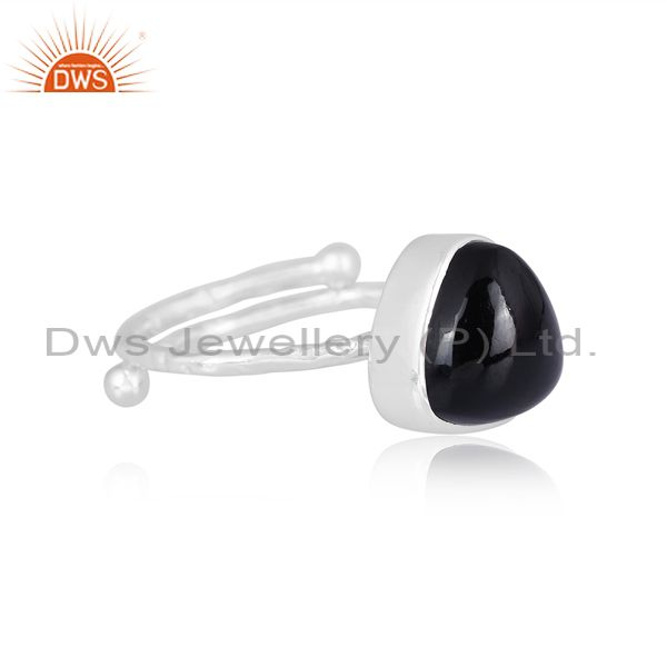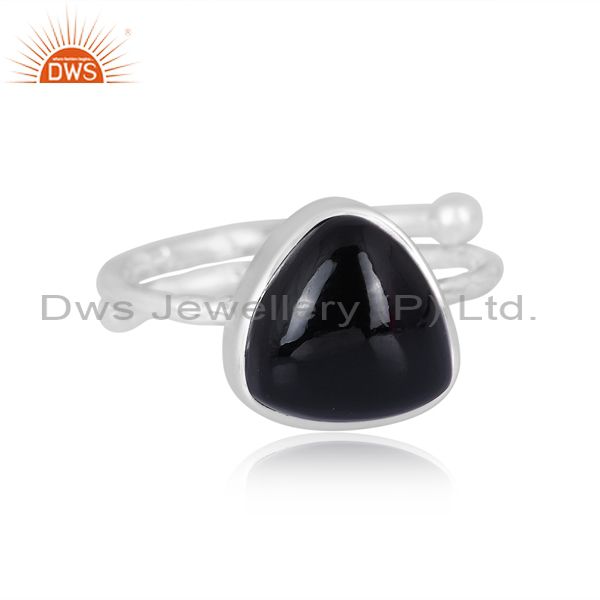 Triangular Black Onyx Set Fine Sterling Silver Fancy Ring