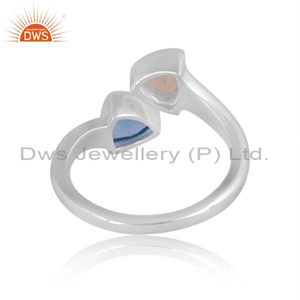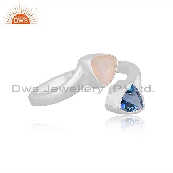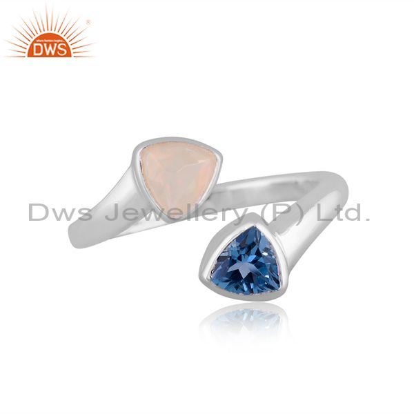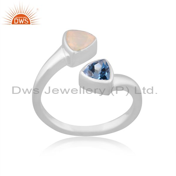 Triangular Blue Topaz, Ethiopian Opal Set Fine Silver Ring